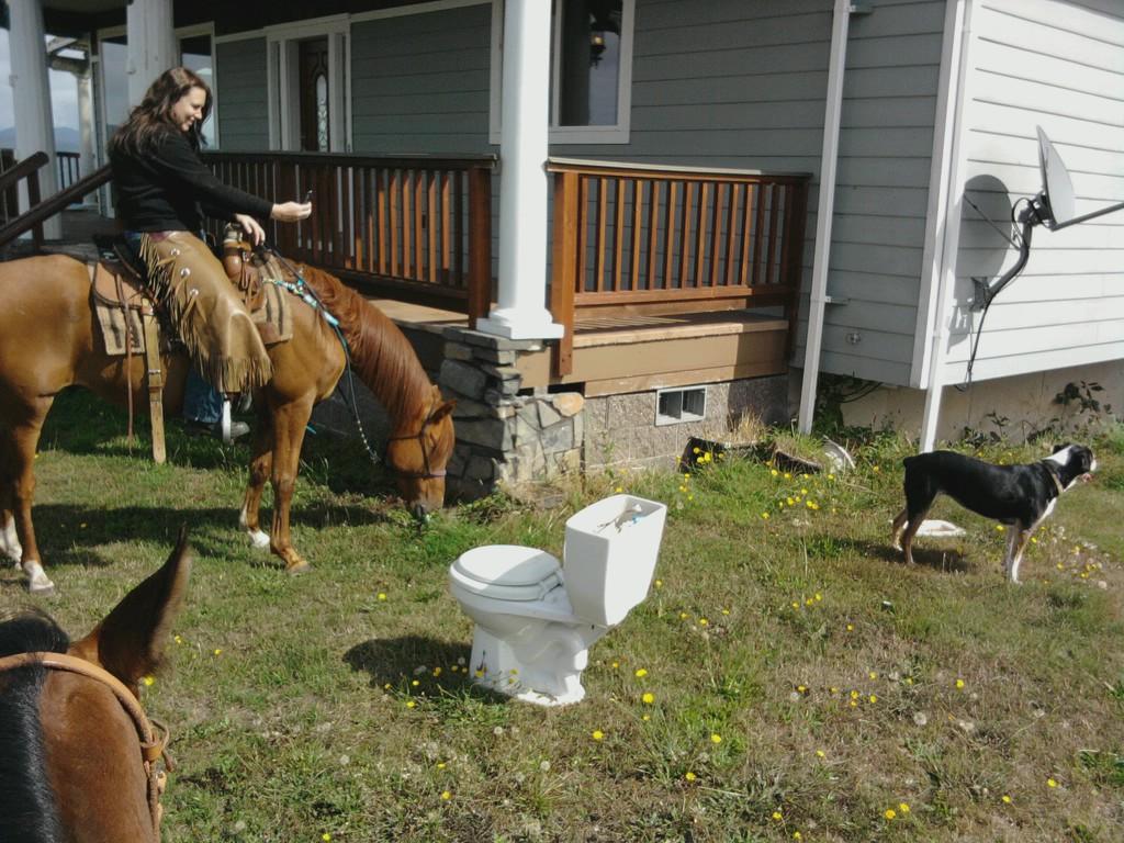 Wildflower waving "hi"... Lucky and her baby in the background...